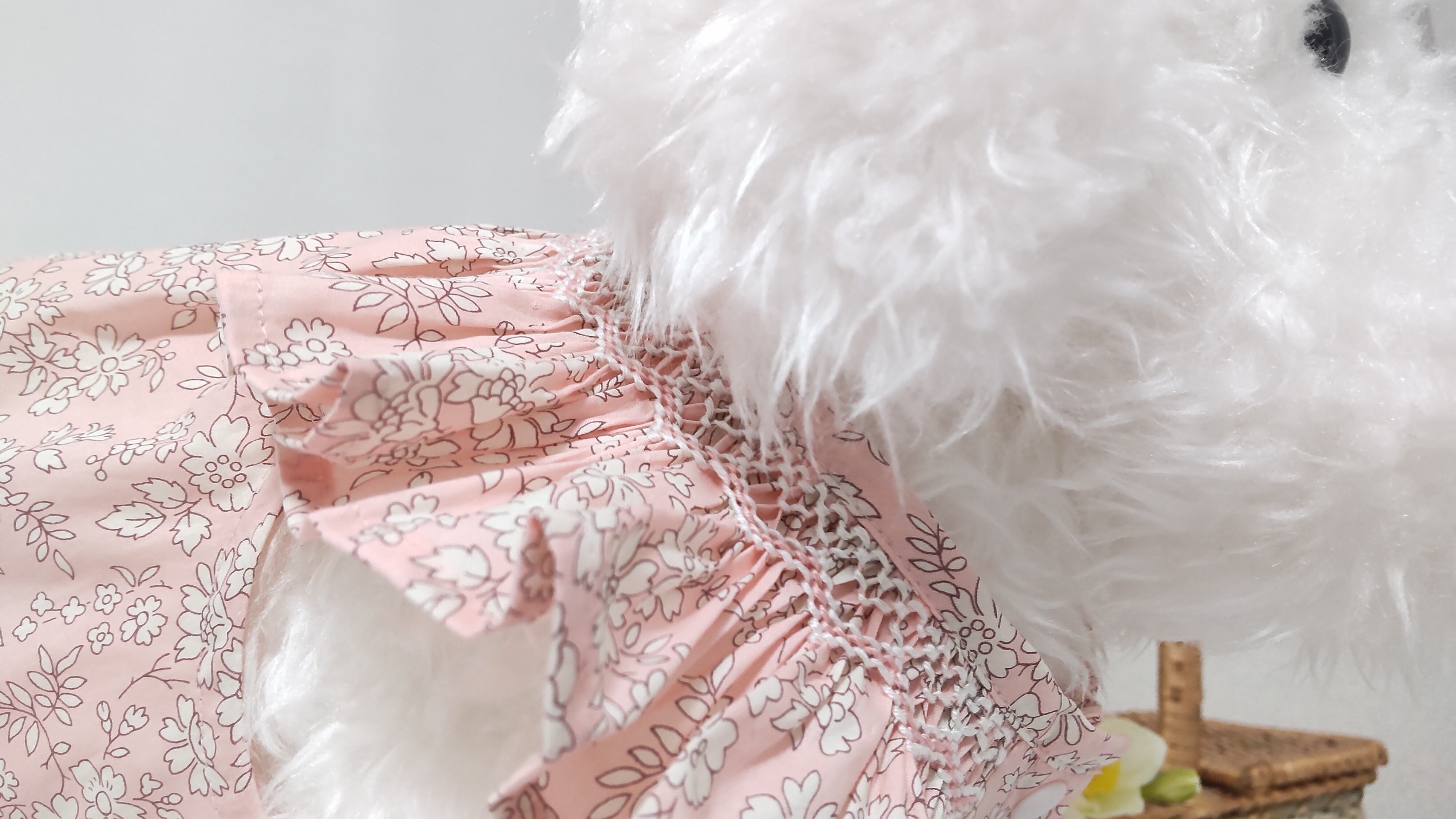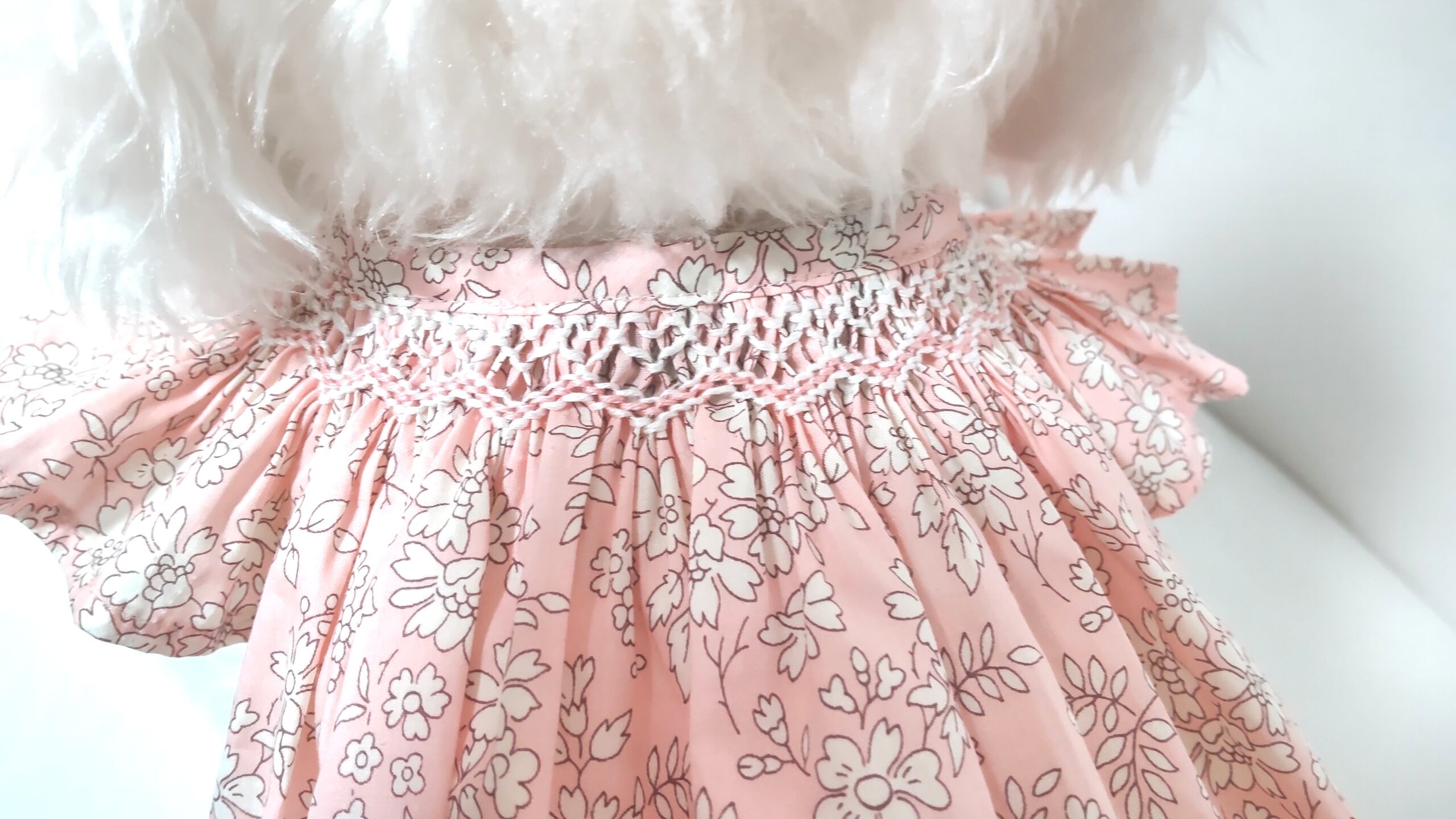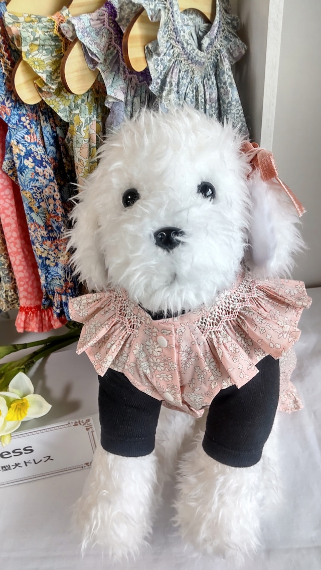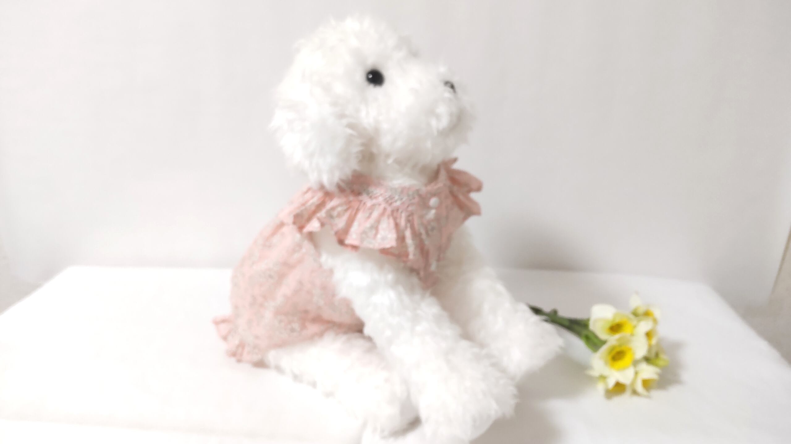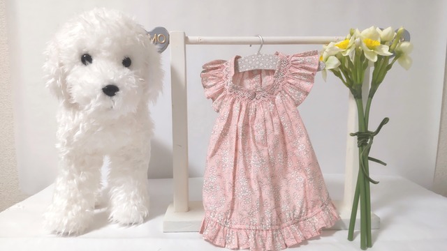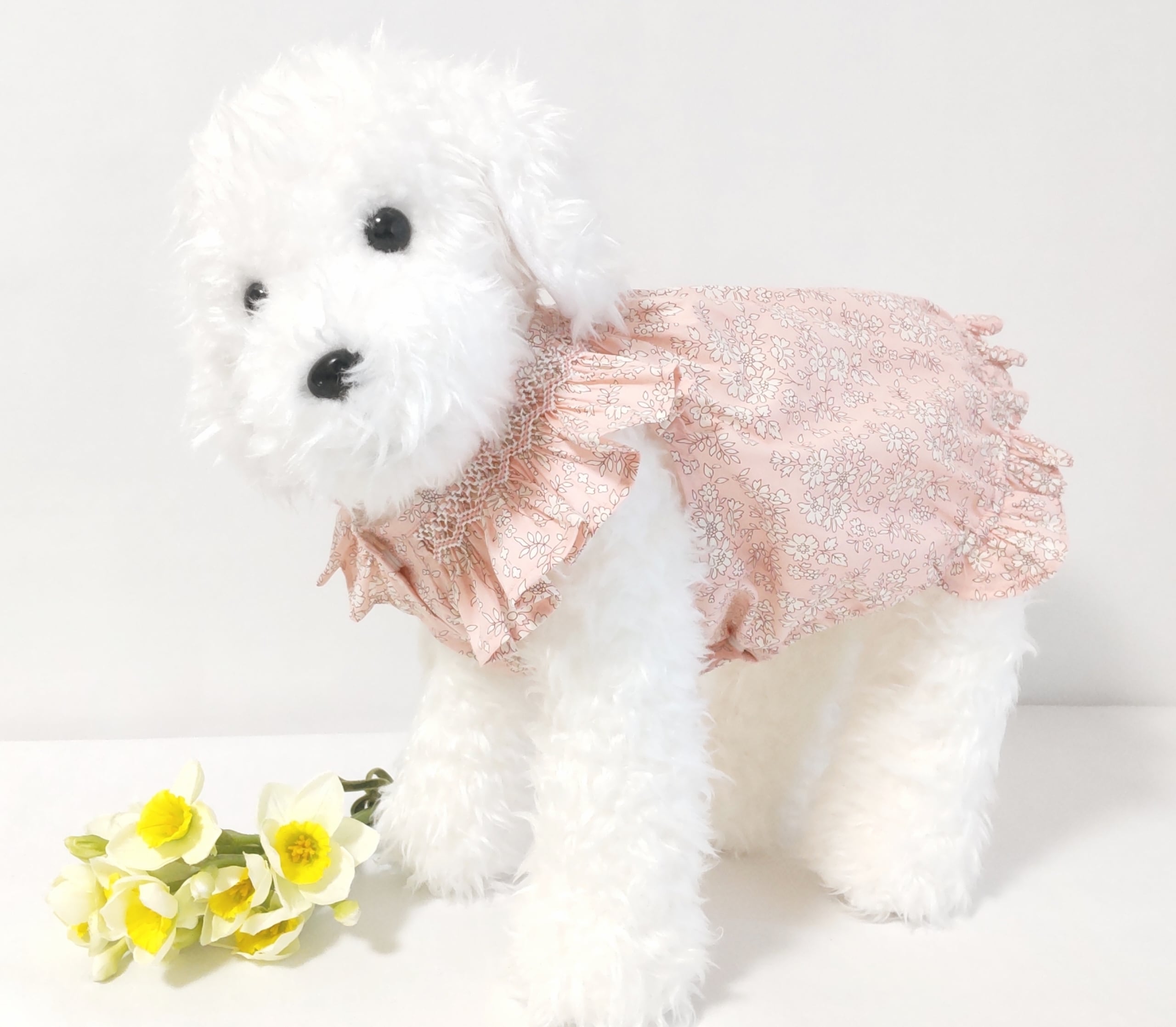 受注制作の可愛らしい犬服「スモッキング刺繍のリバティプリントドレス」が登場しました!