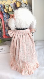 優しいピンク色のリバティプリントに繊細な刺繍が施されたこのドレスは、愛犬に上品でおしゃれな雰囲気を与えてくれます。