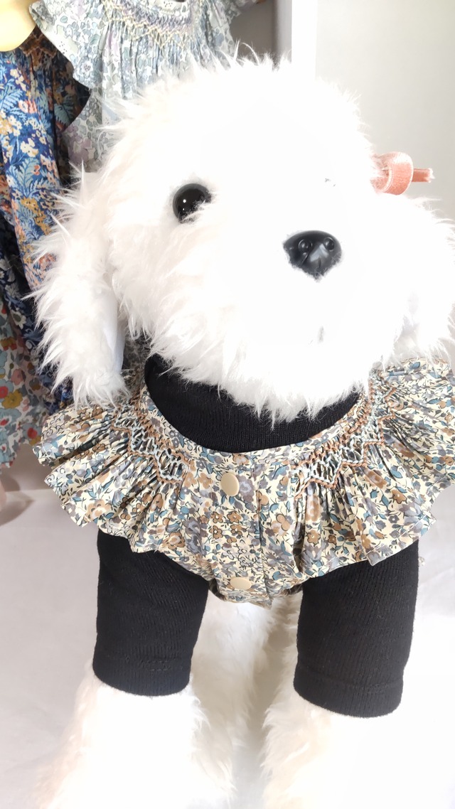 可愛らしい犬服「スモッキング刺繍のリバティプリントドレス」が登場しました!