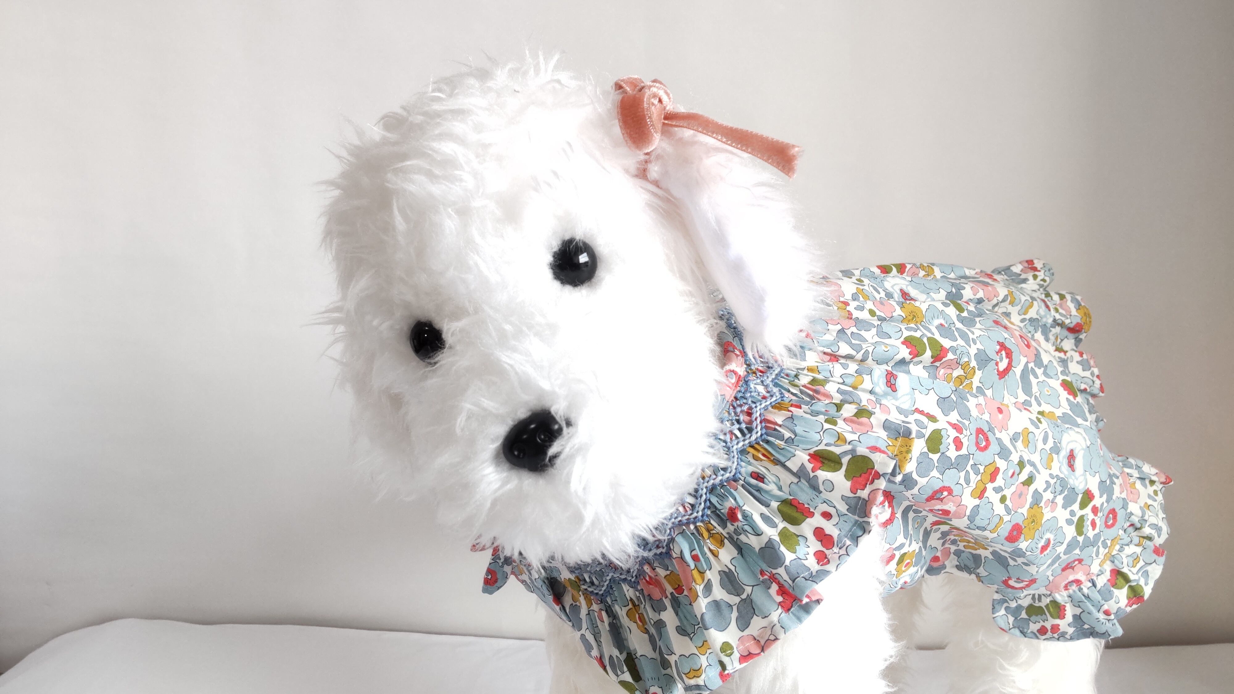 可愛らしい犬服「スモッキング刺繍のリバティプリントドレス」が登場しました!