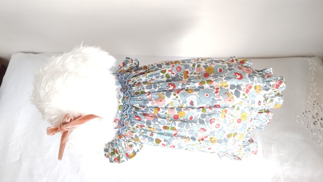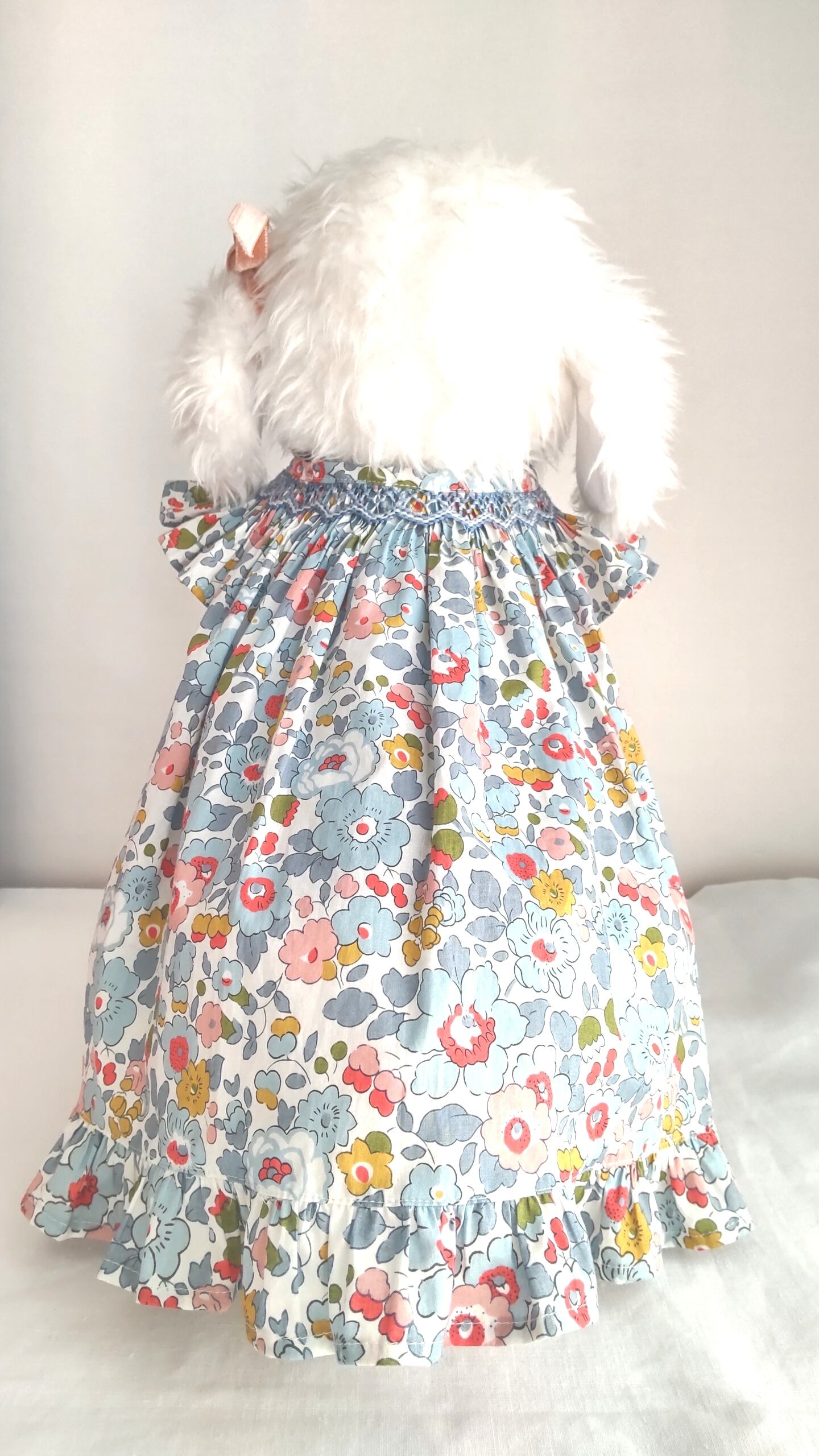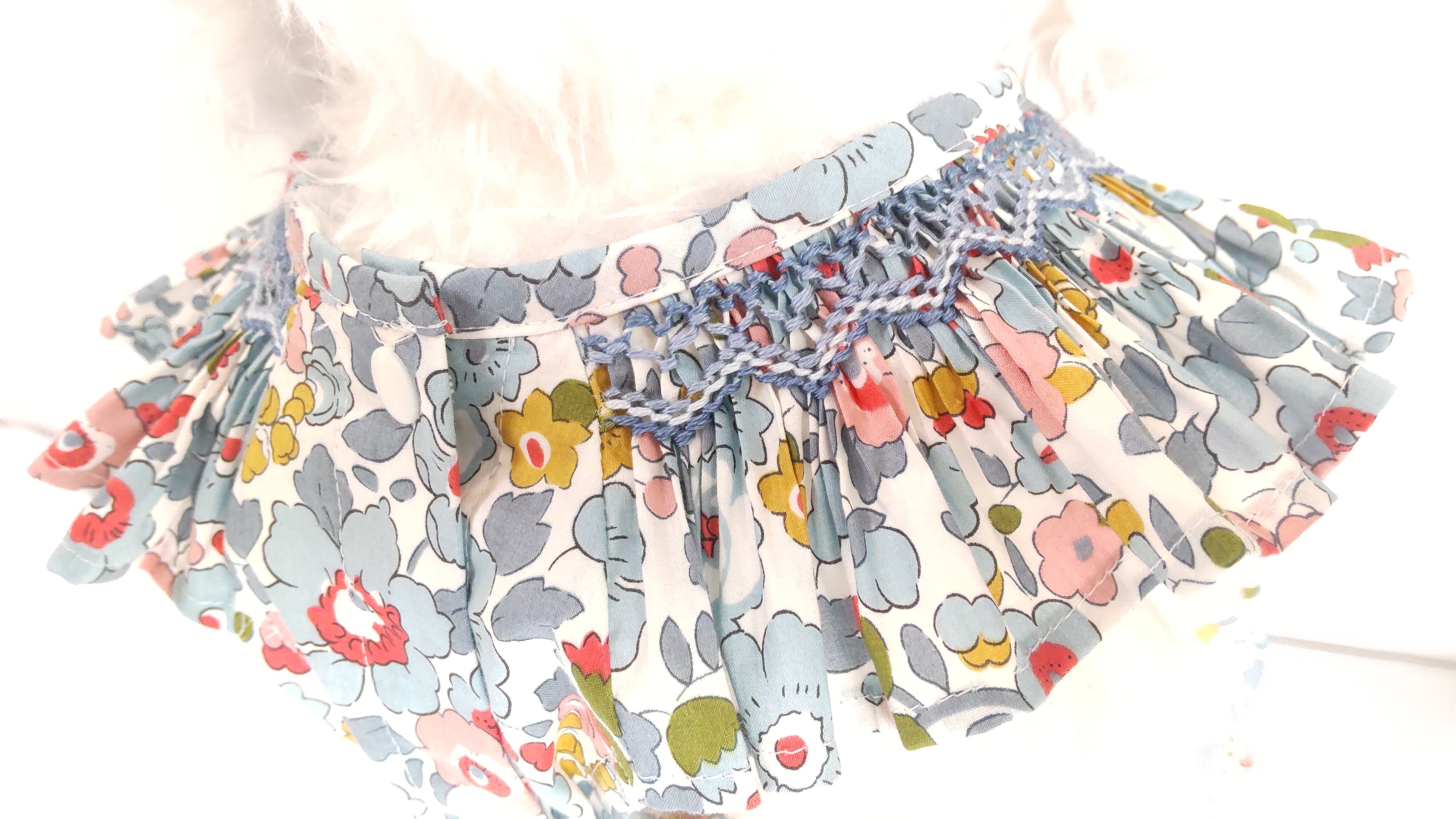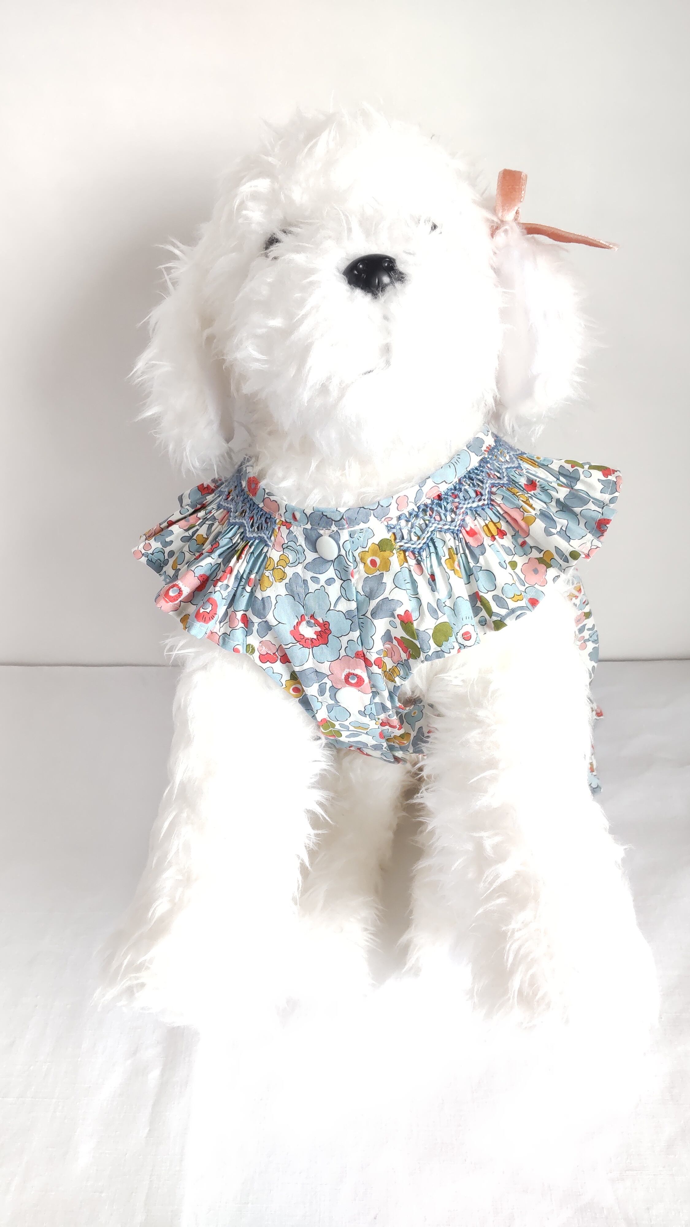 犬服 スモッキング刺繍のリバティプリントドレス ベッツィ柄 サイズM